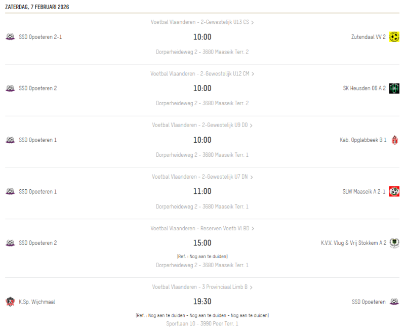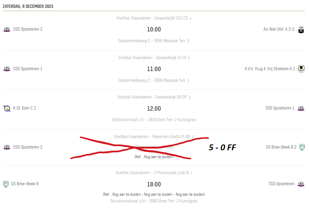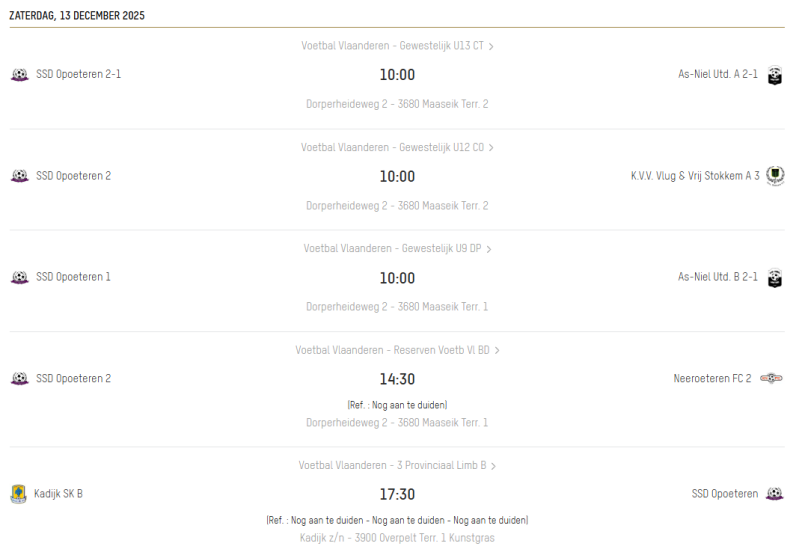 Weekend kalender 1ste ploeg - Reserve en jeugd ploegen