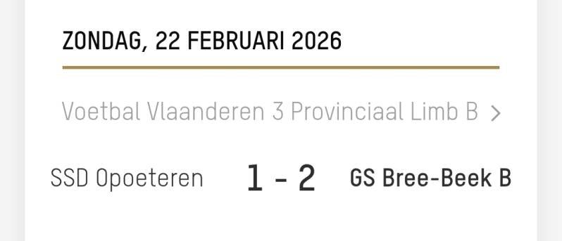 Wegens forfait van S.S.D. Opoeteren Niv.2-1 gaat de wedstrijd Lindeboys Sp.Leut Niv.2 - S.S.D. Opoeteren Niv.2-1 (Voetbal Vlaanderen - 2-Gewestelijk U13 Cs) van 21/02/2026 om 11:00 niet door.