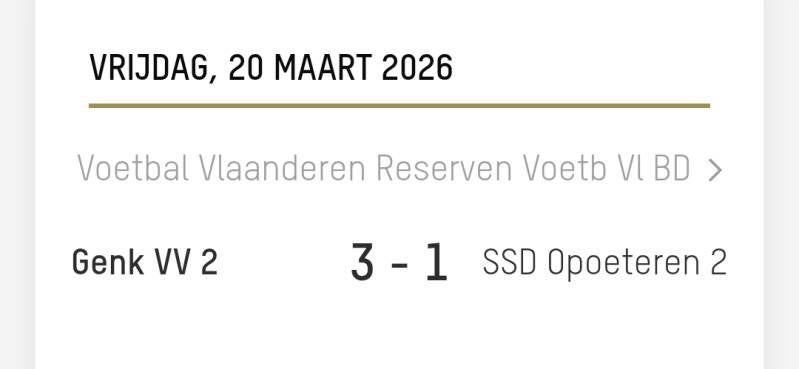 > Eerste wedstrijd van nieuwe seizoen 2025-2026 met een valse start is er een voor snel te vergeten, Reserve SSD Opoeteren thuis tegen Genk VV gaan zwaar onderuit bij 1 - 10 verlies.